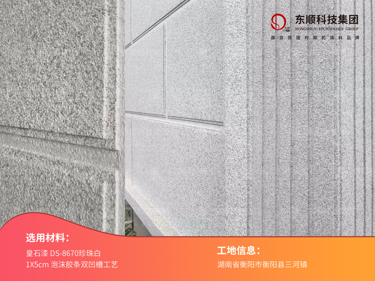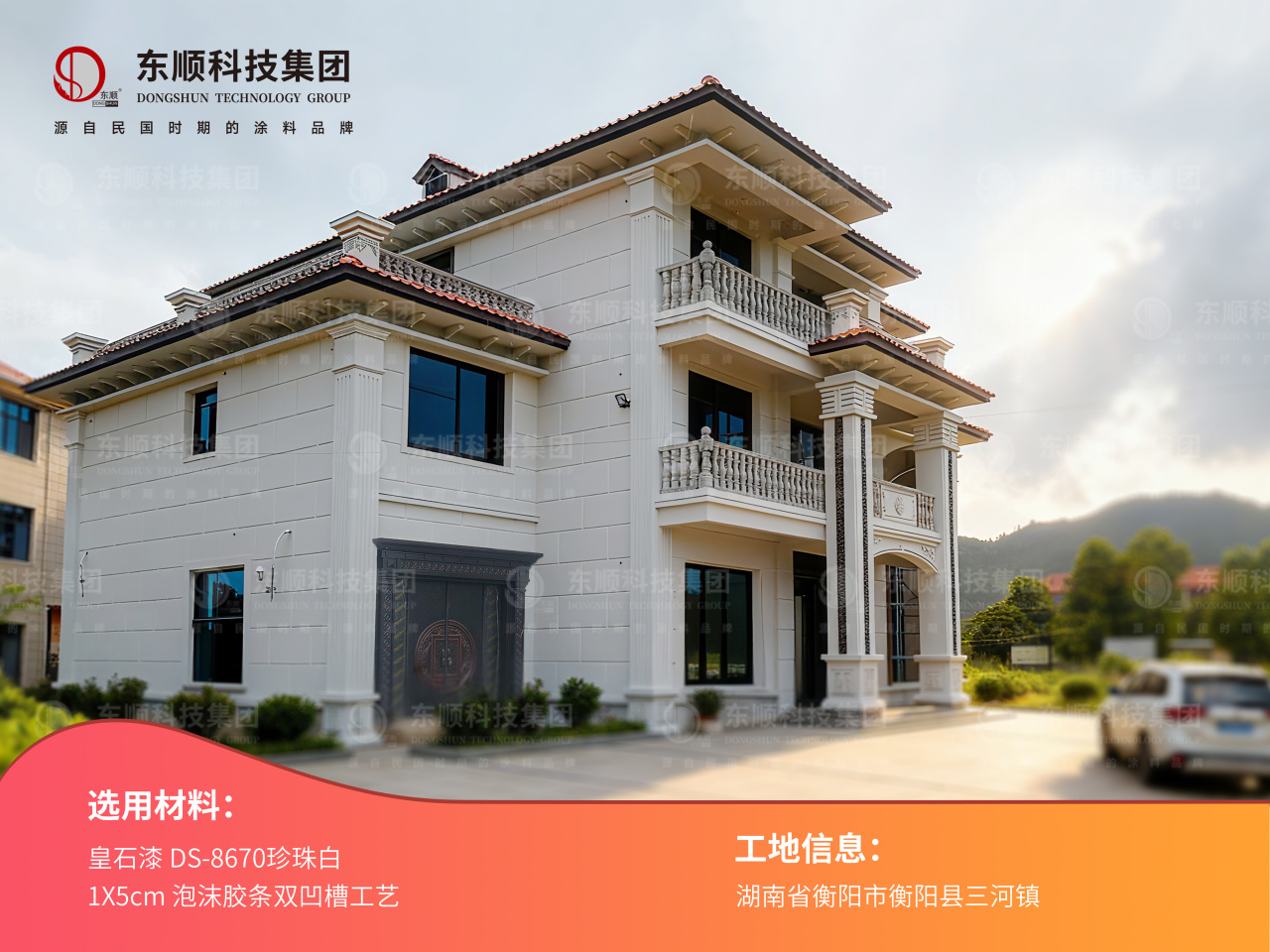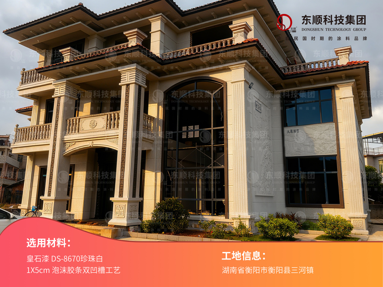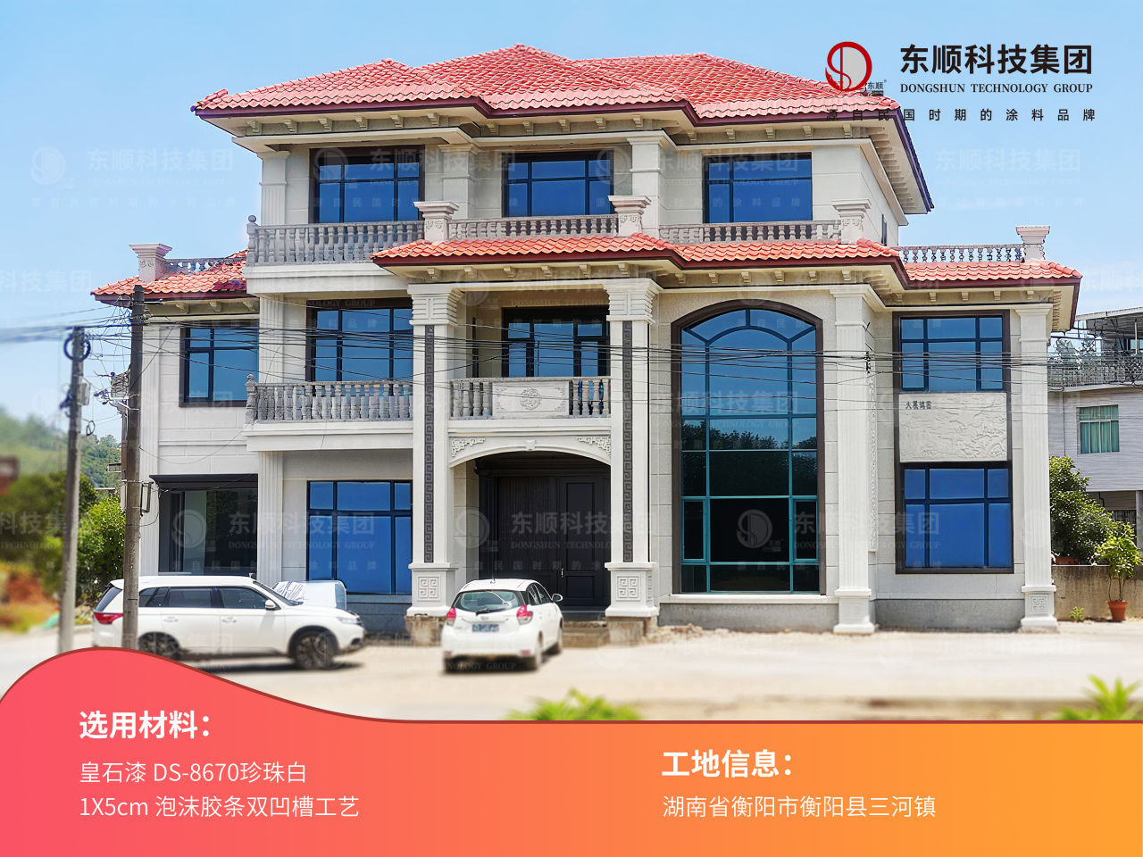 湖南省衡阳市衡阳县三河镇 皇石漆别墅案例 色号:DS-8670珍珠白 泡沫胶条双凹槽磨边工艺